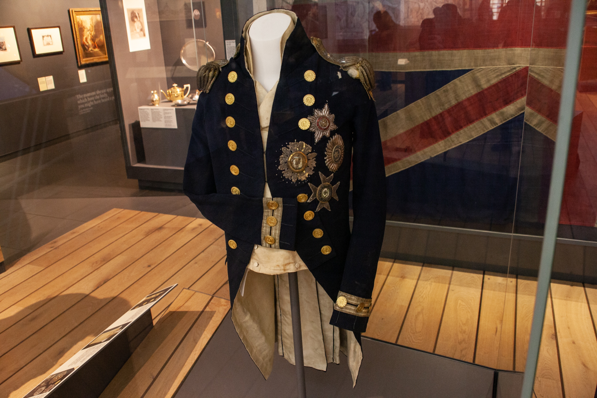 The last uniform warn by Lord Nelson, at the Battle of Trafalgar. The hole of the fatal bullet is visible in its shoulder